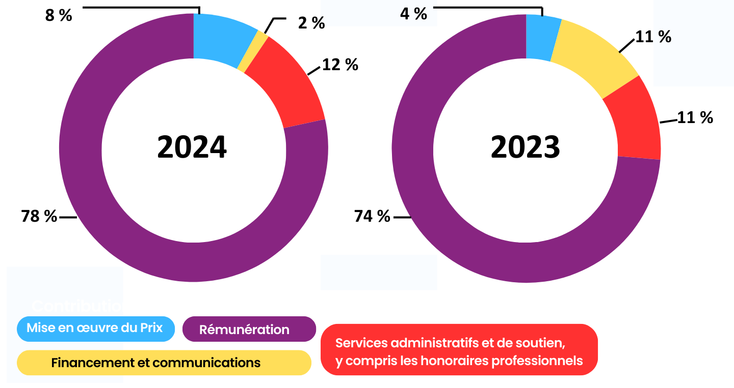 En 2024, le Prix a franchi des étapes importantes vers la viabilité financière à long terme. En continuant à renforcer notre fondation philanthropique, nous avons recueilli près de 1,5 million de dollars grâce à des campagnes de dons, des demandes directes et des commandites corporatives, avec le soutien de plus de 370 généreux contributeurs. Notre stratégie de revenus a également progressé de manière significative. Nous avons augmenté de 30 % les frais d’inscription des écoles et de 18 % nos revenus globaux par rapport à 2023. Bien qu’il reste encore beaucoup à faire, les progrès réalisés en 2024 ont jeté des bases solides qui nous aideront à maintenir notre élan dans les années à venir.