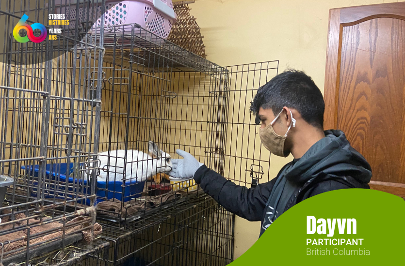 Malgré sa charge de travail, Dayvn s’est porté volontaire chaque semaine, beau temps mauvais temps, au Vancouver Wildlife Rescue, qui aide les animaux négligés à être adoptés par la communauté locale. Il a notamment participé à la propreté du refuge et des cages, aux soins, à l’alimentation et à la socialisation des animaux en attente d’adoption, à l’approvisionnement des étagères et à la sensibilisation du public aux dangers de l’abandon des animaux.