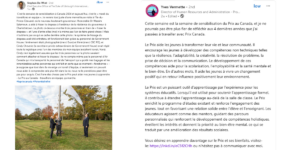 Tout au long de la semaine de sensibilisation du Prix, nous avons adoré avoir de vos nouvelles et lire les histoires personnelles partagées sur les médias sociaux. L’afflux de publications, de photos et de messages sur Instagram, Twitter, LinkedIn et Facebook a montré à quel point le Prix a eu un impact profond sur des vies. Votre utilisation du hashtag #PrixCanada et des cadres des médias sociaux a apporté une nouvelle visibilité au Prix, permettant à ses valeurs de résilience, de leadership et de communauté d’atteindre des publics plus larges.