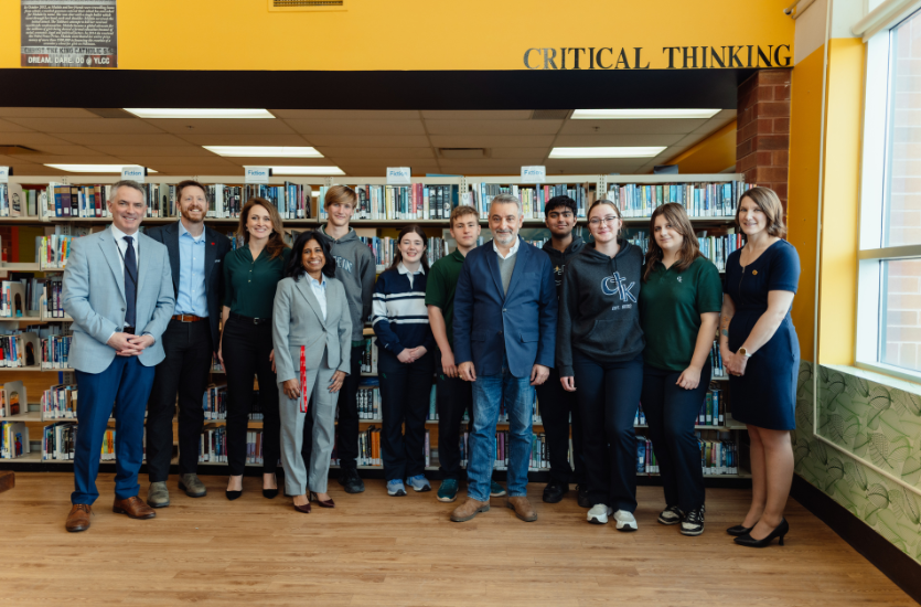 L’école secondaire catholique Christ the King a récemment accueilli le ministre de l’Éducation de l’Ontario, M. Paul Calandra, le député provincial Joseph Racinsky et le directeur de l’éducation du HCDSB, M. John Klein, à l’occasion d’un événement spécial visant à démontrer comment l’apprentissage par l’expérience transforme l’éducation grâce au Prix Canada.